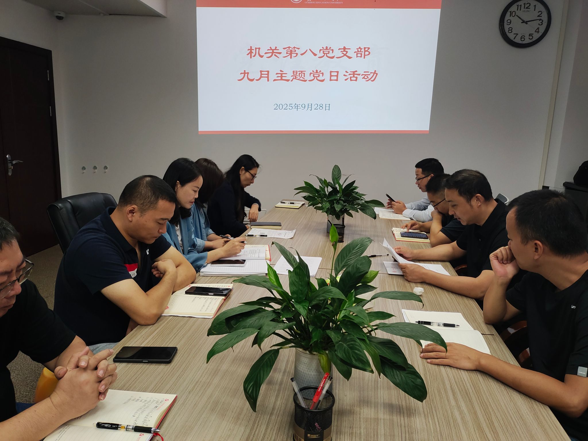 9月28日,机关第八党支部开展9月份主题党日活动,活动主题是“深入贯彻中央八项规定精神学习教育专题研讨暨学习教育总结会”。活动由党支部书记田茂军主持,党支部全体党员参加。